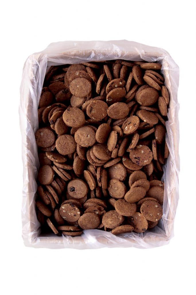 Galletitas dulces 100% integrales con harina de algarroba, pasas de uva y semillas de girasol. Aptas veganos.