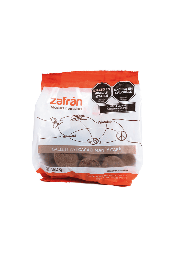 Galletitas dulces 100% integrales con cacao, maní y café. Aptas veganos.